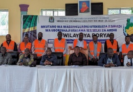 Mkuu wa Wilaya ya Rorya Mh.Juma Chikoka akiongoza mkutano wa wadau kujadili utekelezaji mradi wa uboreshaji usalama wa milki za ardhi uliofanyika katika ukumbi wa mapsap ingri....